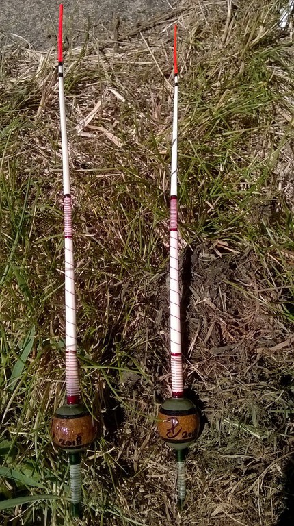 The cork bodied floats are mounted on quill stems and at 7 1/2" long they settle with around 5BB.